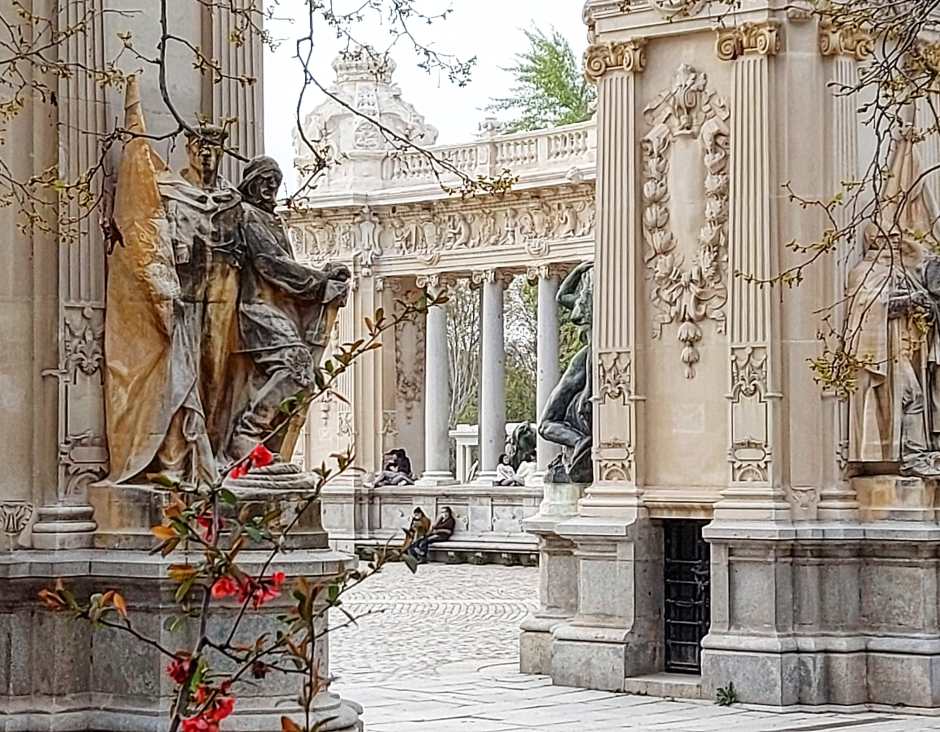 Exuberante naturaleza de plantas tropicales y pavos reales. Museos, monumentos, exposiciones de arte. Una biblioteca enorme con vistas al parque. Un lago con embarcadero, titiriteros, turistas nacionales y extranjeros, gente de todas las culturas y clases sociales. Restaurantes florales y bares al aire libre con baile. Luces nocturnas, música con luna. Besos sostenidos por estatuas, caricias tras los árboles, murmullos de voces que proclaman amor a un viento juguetón. Imposible no hallar la inspiración en este edén madrileño un atardecer de marzo bañado por el sol.